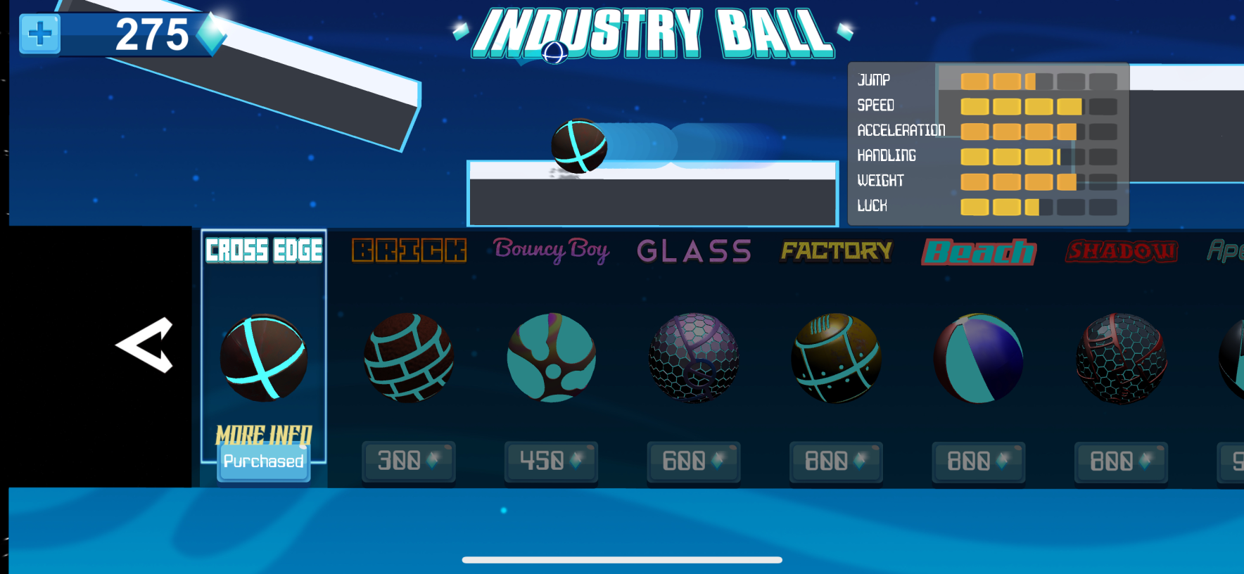 We wanted every Ball (essentially a vehicle) design to have it’s own style, and stats which elevated the game from a pure arcade platformer, to thoughtfully integrate RPG elements.