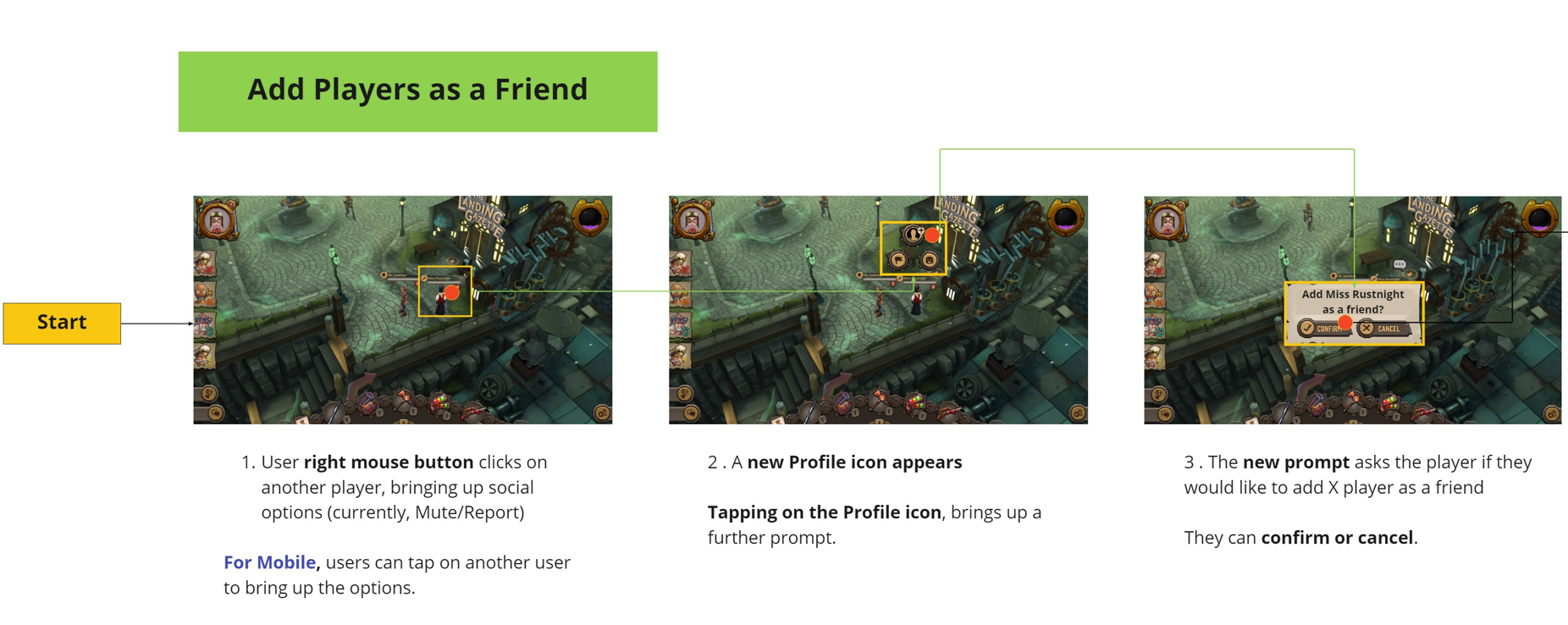 I developed a new system which allowed a user’s profile to be displayed when you “tap” on their avatar. This an intuitive and fun solution which created an intreractive landscape where players could easily add eachother as a friend